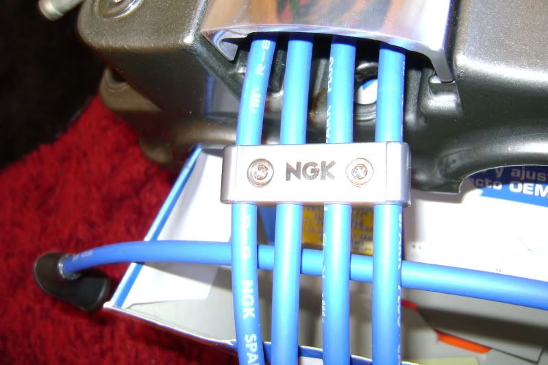 MSD coil, NGK wires, Inline4 billet plug cover, black chrome valve cover. which is being replaced for the 3rd time.