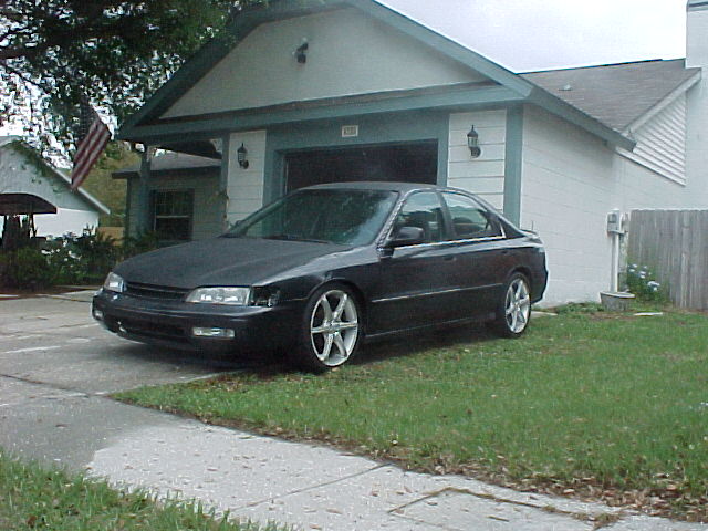 my 94 accord is a good running car. automatic. motor has been rebuilt with only 45,000 miles on it. the chassies has 161,000 miles. has a single cam f22 motor, 18in. konig rims that need tires (sold with or separatly), front upper strut bar, clear bumper lights, strobes in headlights and bumperlights, red neons shine through the grill, set of steelies with tires, red noen on the roof (turns on when the doors are open or stays on constantly), a/c works, needs stereo (has speakers), body is clean, one or 2 little dents, car is PRIMERED, paint it if you want.....looking for 3,000 (willing to negotiate)