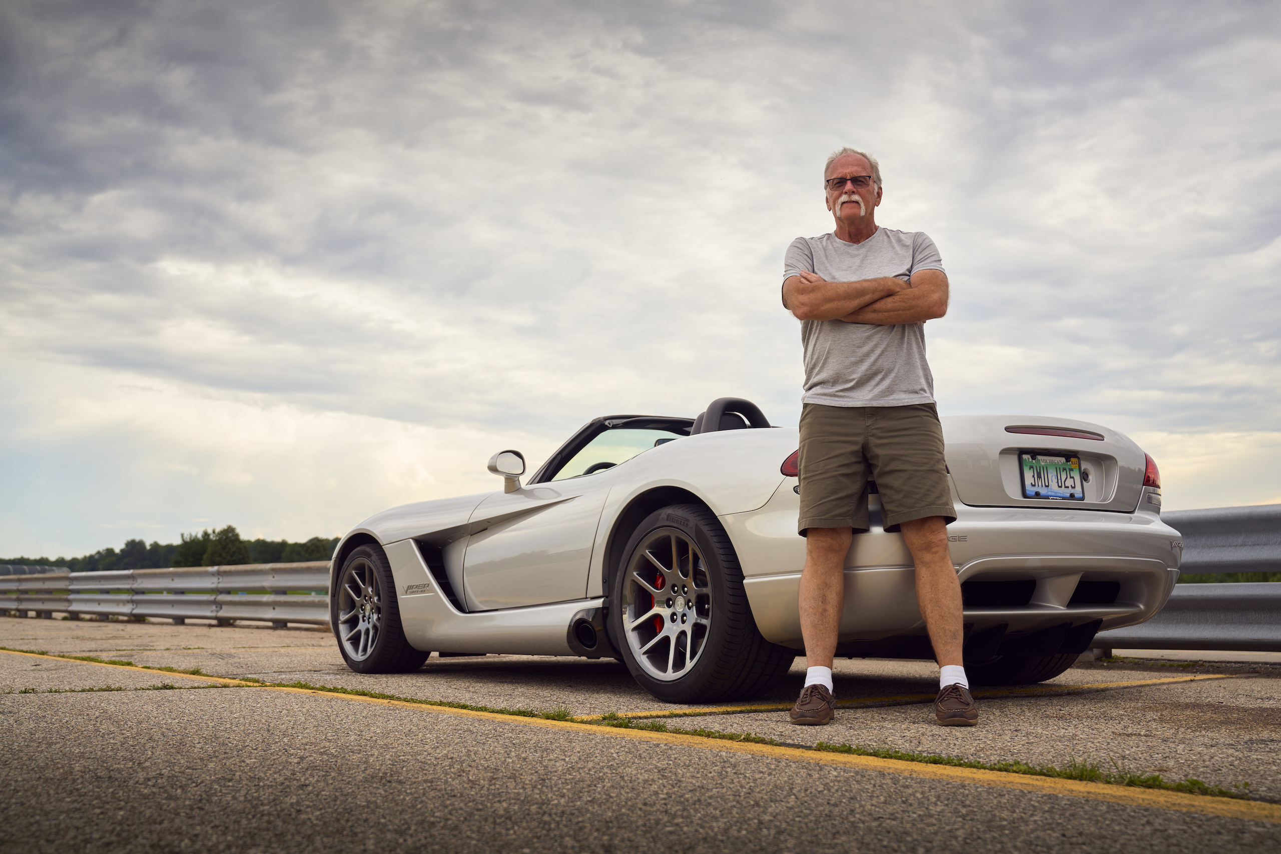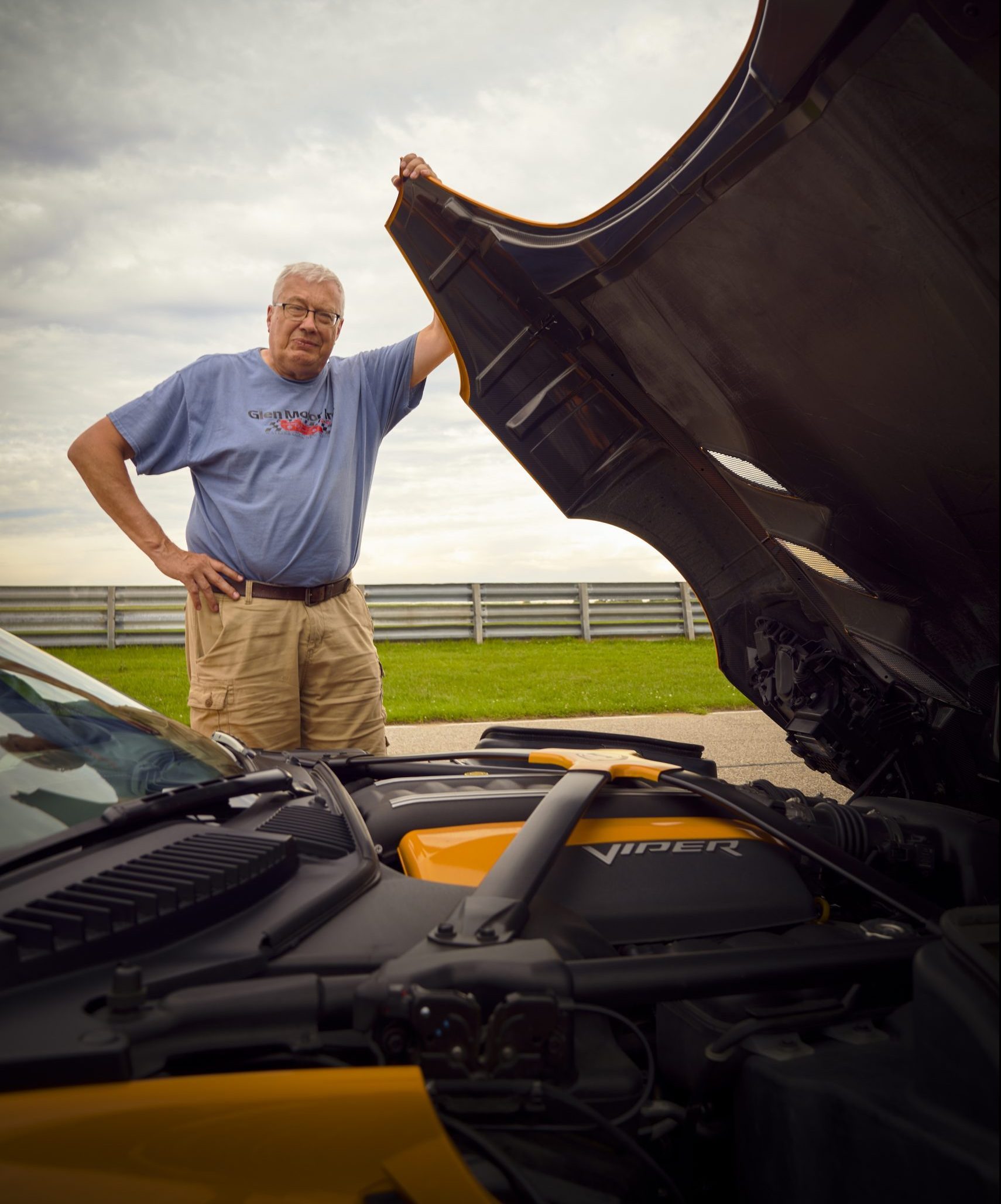 Motor City Viper Club membership director and ACR owner Marty Heitkamp proudly stands behind his 9.0-liter Prefix engine conversion. Too much power? Nonsense. Andrew TrahanCome evening, with all three Vipers gone from the paddock and only my dour Honda awaiting the ride home from GingerMan, I felt fairly seized by sorrow. At not being able to drive them anymore, at not owning one, at not knowing when I’d get another chance. These cars are satisfying at a level that a modern Ferrari or McLaren can’t quite touch; they are determinedly analog devices that demand your full attention and reward you for giving it. No, they aren’t perfect, they fail to reflect the admirable virtues of our socially conscious modern society, and they are anything but upscale, but as Prince Hal said, we could better spare a better car.