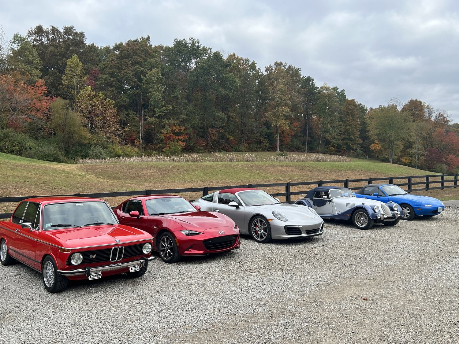 Today we start driving. Fall foliage will be reaching its peak, and we’ll be enjoying the colors and crisp air as we cruise along. The roads in this area are uncrowded, hilly and curvy- perfect for sports car touring. There is slippery red clay at every dirt road, and horse manure only on your side of the road, but conveniently placed so the valet parker can clean it off your windshield every night.