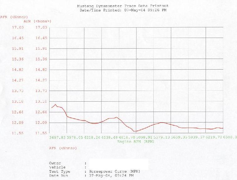 wow im very impressued with the numbers. keep in mind how much power youre missing from running so rich. those a/f ratios look good for a boosted car but not for n/a. youll easily pick up another 5-7whp from leaning out the mixture to about 13.0. also a mustang dyno doesnt read as high as a dynojet. i bet with some good tuning youll put down 160-165whp on a dynojet