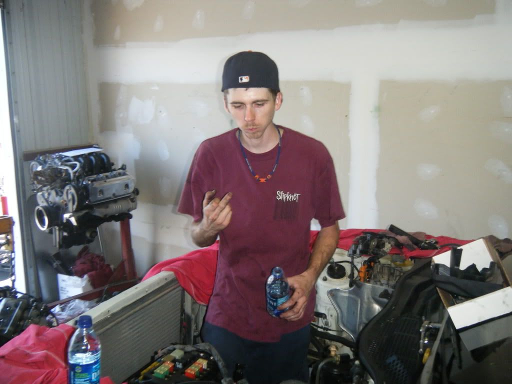 ok so major thanks to alan for making the 2 hour ride south to come get dirty lol. thanks for your help and sorry for getting shitty towards the end that whole intake thing had/has me fucked up. but iam happy with the progress made for my first one on the first day but tomorrow is another day.....
