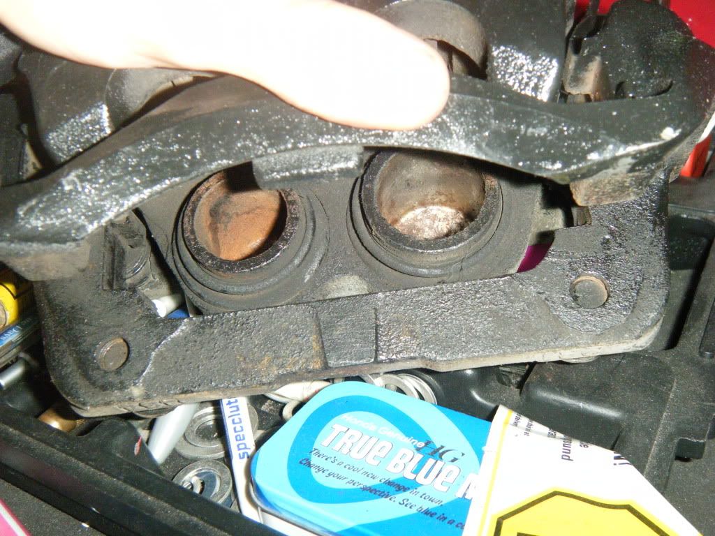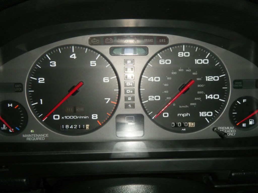 i have been driving it the past few days on the stock gs rims and holy shit ive lit these bitches up like crazy. this car really feels different now. the low in feel is night and day ..like leaving from a light. plus i still have a T2 intake id like to get around to getting on. but as for now i am SOOOOOOO sorry that i debated selling this car. the only way this car leaves my cold dead hands are if it gets totaled. i fucking love this car even more now. thank you to everyone that helped me out with one thing or another weather it be a place to do the swap or info or mount or ecu. everyone. and the old camo covers yeah hit me up on a shared_pm. well i finally got around to installing my new gauge cluster id still really like to find a jdm one in kph but for now this will work. also got around to painting my GS/T2 calipers and ill get those on later in the week.also need to paint the intake pipe i found a 90 degree pipe to change my short ram into a cold ram. so iam thinking about painting it black?? what is your thought ???? one is chrome and one is primer as of now.ALSO.... went checking out the parts catalog and found a mugen rear view mirrow cover for the fit is all kinda colors so i traded in some transmission fluid for a white one lol. but i have a few more pics but here are a few as of now. ill be posting more later. thanks for lurking....