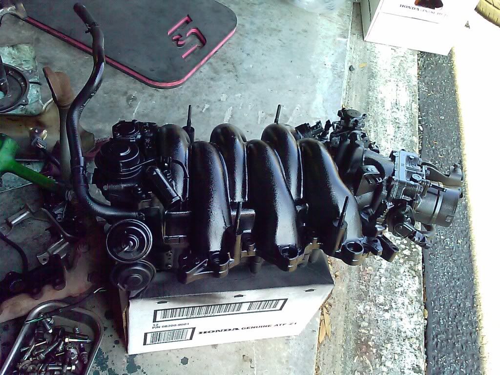 was going to paint my valve covers and intake manifold some crazy ass color but was/am on the fence about selling the car so i decided to go black with the intake manifold and still undecided for valve covers...prolly wrinkle red though.