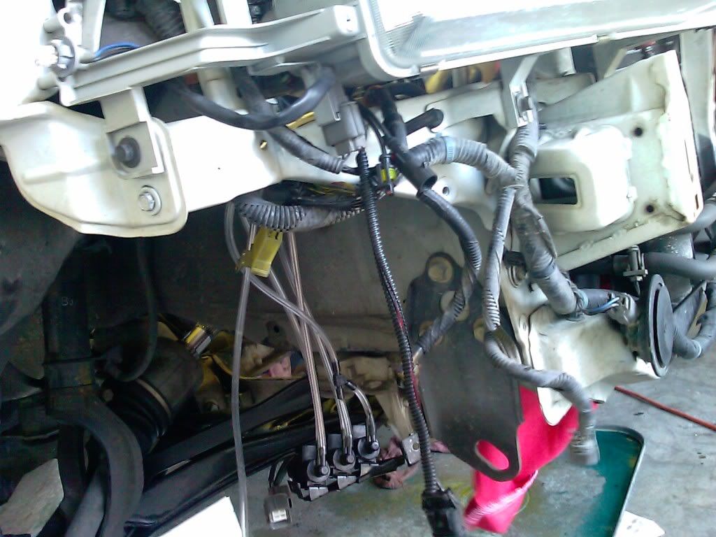 moved all the vacume shit to the fender/head light area. tucked all the vacume lines, HID balast and head light harness.