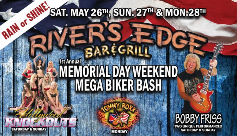 Gibsonton, FL - RAIN OR SHINE. That's what owners Robert and Lisa said about the weekend coming up. Memorial Day is about honoring those men and women who died serving our country. We will be celebrating our freedom while remembering their sacrifices. It doesn't have to be a picture perfect weather day to do that. River's Edge has planned accordingly and has plenty of coverage from inclement weather. Where land lover's and sea lover's always come to enjoy this relaxing atmosphere (hint: catch a sunset) while enjoying some great food (hint..the oysters are the bomb!) while having an ice cold beverages! But on Memorial Day Weekend they are punching it up with Bobby Friss, The Hollywood Knockout Girls, a bike show $100 Best of Show! Special tribute on Monday to honor those on Memorial Day..