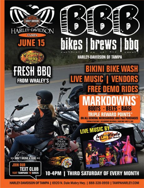 Tampa, FL Harley-Davidson of Tampa BBB-Bikes Brews and BBQ. Miss Tampa Harley-Davidson Contest and more. TampaHarley.com