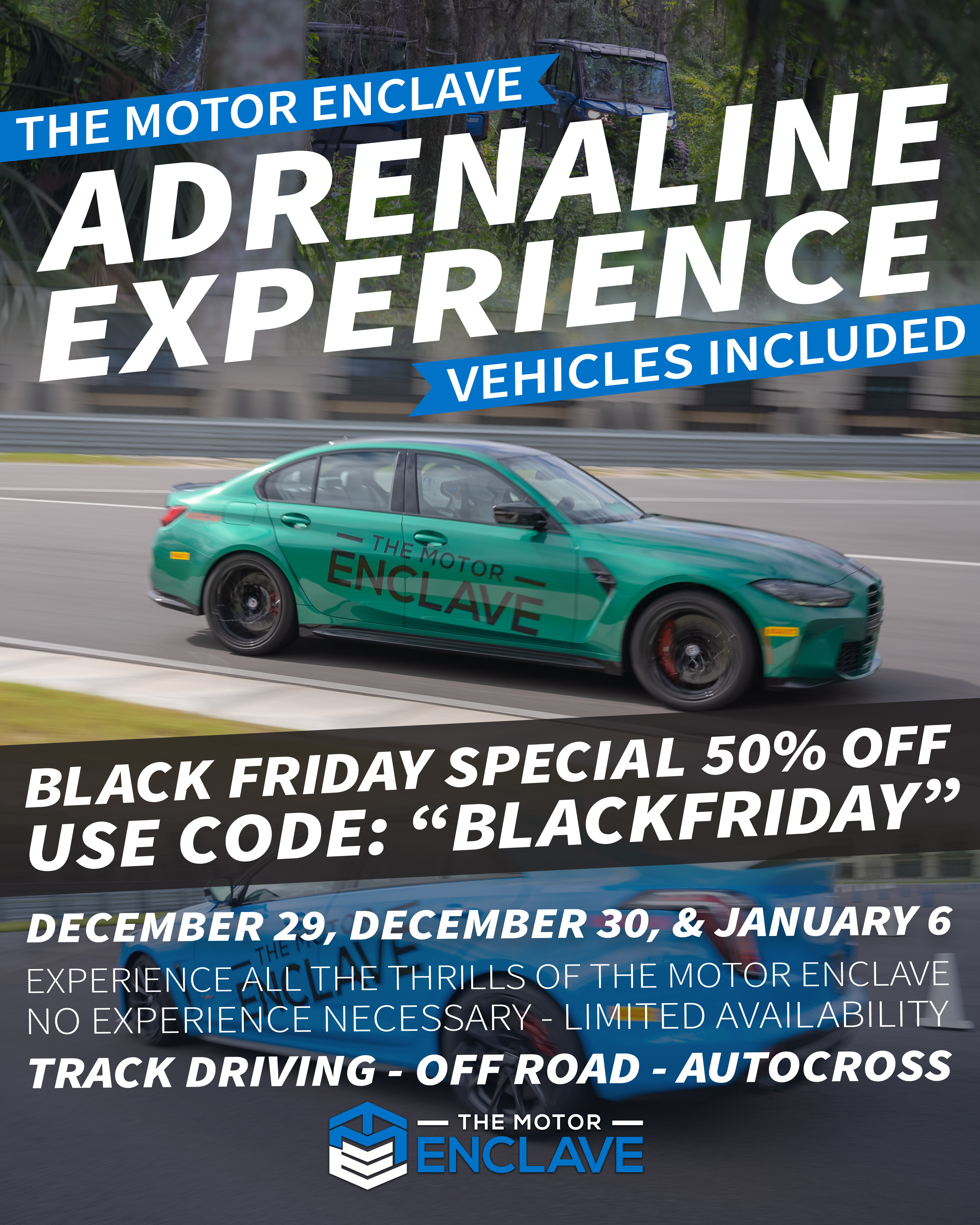Experience all of our driving experiences in one adrenaline filled day USING ENCLAVE FLEET VEHICLES!