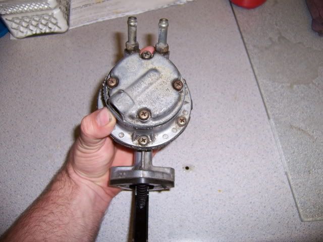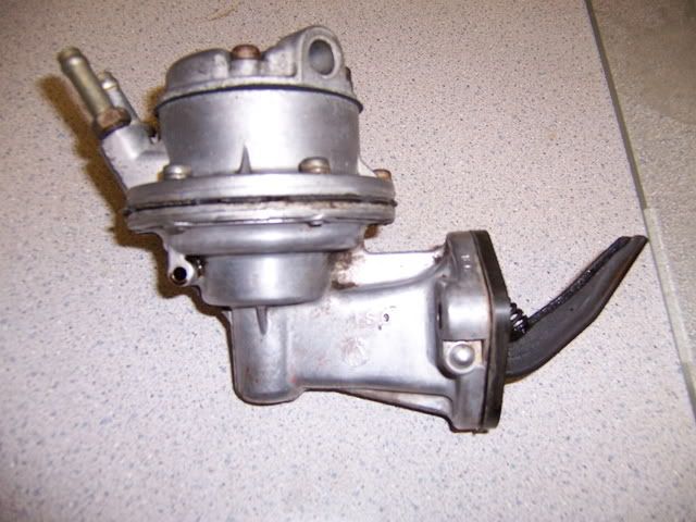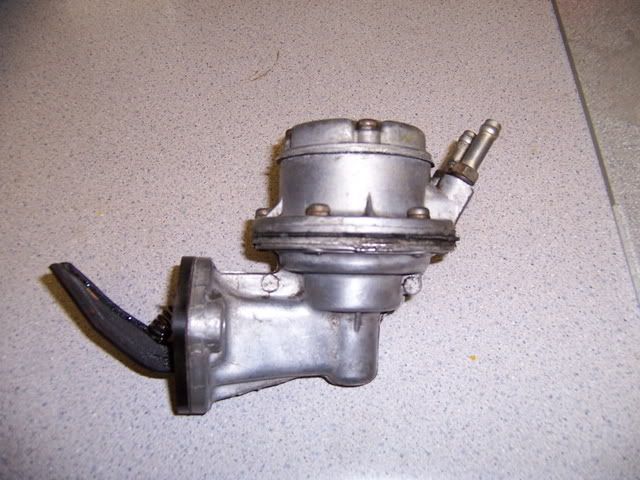 well was at the junkyard and found a mint 78 cressida. thing looked sweet. even the interior was mint. cant beleive it was in there. just a small dent on one of the pass doors. and i mean small. paint was mint otherwise. an obvious garage kept beauty. anyhow. since they wont sell cars one they are in the yard, it had a 4me with mechanical fuel pump. soooooo, i grabbed the pump. heres some pics after i cleaned it up. its bigger then i thought it would be. im wondering how much volume this thing can pump. if it wont work ill hollow it out and use it as a dummy pump so people think it is feeding the carbs anyway. lol. and hoepfully i can get it polished up real nice.