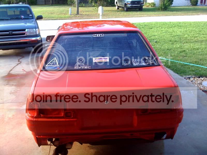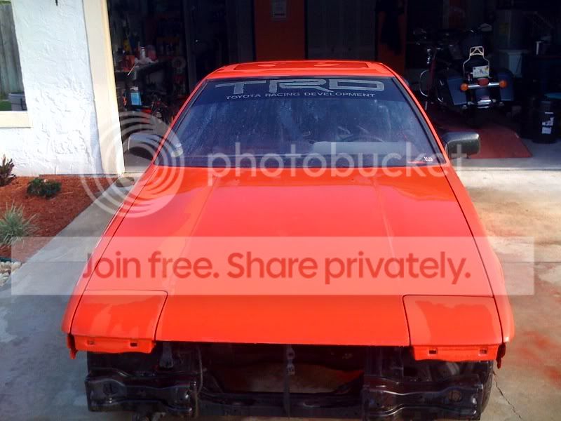 small update, the cars all one color again. the engine bay is done so i can take the car to my dads shop so i can put the motor in it and get it running. this is just a base coat in red. the final color will be mazdaspeed miata velocity red. once the car is done and running i can drive it to a booth and finish painting it.
